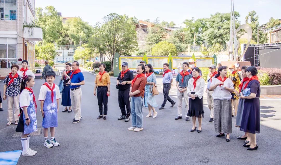 伴着热情的掌声,武汉市妇女事业发展促进会和经开区教育局的领导们步入新城小学,学校六年级优秀毕业生为嘉宾佩戴鲜艳的红领巾。走进新城小学,已感受到浓浓的节日氛围,教学楼前,扎染展区、美术展区展出了孩子们动手创作的工艺品,美术展区内,书法社的师生现场创作折扇;舞台上,古筝表演《少年中国说》《采菊东篱下》、舞蹈表演《AI里的传承》等表演精彩纷呈。